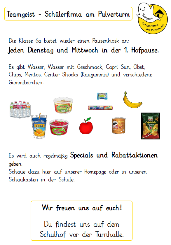 Dienstags und mittwochs: Pausenkiosk der 6a